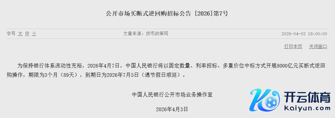 央行:4月7日将开展8000亿元买断式逆回购操作 期限为3个月央行:4月7日将开展8000亿元买断式逆回购操作 期限为3个月
