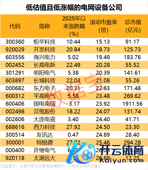 低估值且低涨幅的电网开辟公司出炉云开体育低估值且低涨幅的电网开辟公司出炉